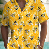 Camisa de manga corta con bolsillo y estampado digital de abeja de hawai para hombre de talla grande