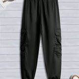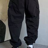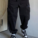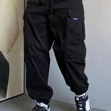 Pantalones cargo informales con cordon para hombres de talla grande con detalle de cinta con etiqueta azul