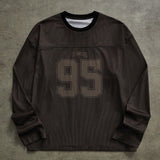 Manfinity rebelgame camiseta cuello redondo de manga larga con estampado de numeros y tela de malla para hombres de talla grande