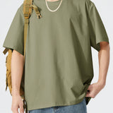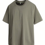 Camiseta de manga corta de cuello redondo de unicolor gris-verde, adecuada para el verano, tallas grandes