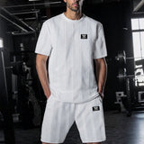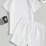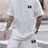 Conjunto de camiseta casual de manga corta y cuello redondo con estampado de letra y pantalon corto con cordon en la cintura para hombre de verano