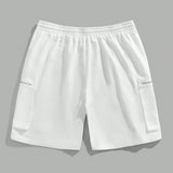 Manfinity rebelgame shorts blancos holgados de tejido suelto talla grande para hombre con bolsillos 3d, para verano