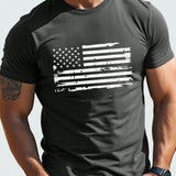 Homme camiseta de manga corta y cuello redondo para hombres de talla grande, estilo nuevo de verano 2025, con estampado de estrellas y rayas, casual y elegante maduros
