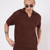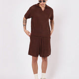 Sumwon conjunto de 2 piezas de polo de manga corta de punto calado y pantalon corto con cordon en ajuste regular