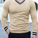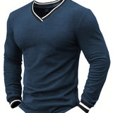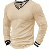 Manfinity homme camiseta de manga larga casual para hombre con acabado contrastante, para primavera/otono