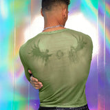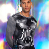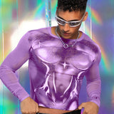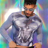 Fevercity camiseta ajustada de manga larga con cuello redondo, de malla con estampado digital para hombre, sexy y adecuada para el verano