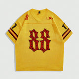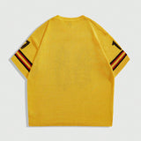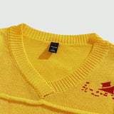 Romwe men prep sueter de punto casual de manga corta con escote en v y patron numerico para hombre