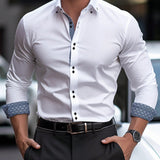 Camisa formal de manga larga con bolsillo y patron geometrico de retazos para hombres