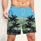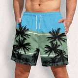 Pantalones cortos de playa informales para hombres con estampado 3d y cordon en la cintura para vacaciones