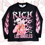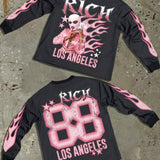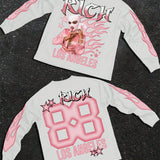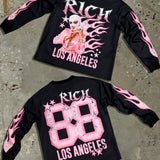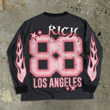 Manfinity emrg camiseta informal de manga larga con cuello redondo con estampado de letras y numeros para hombre