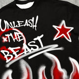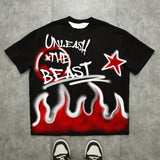 Zone917 camiseta de talla grande para hombre de estilo callejero con estampado vintage de llamas rojas y blancas, cara sonriente, grafiti de texto y estrella para halloween