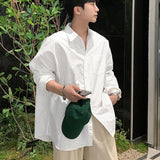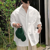 Dazy camisa casual de manga larga de un solo pecho con bolsillo y hombros caidos, color blanco, para primavera