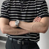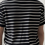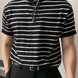Camiseta de punto de cuello redondo de manga corta a rayas para hombre