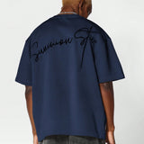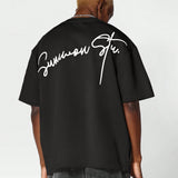 Sumwon camiseta de manga corta de ajuste regular con bordado de firma en la espalda