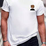 Camiseta informal de manga corta y cuello redondo para hombre talla grande con estampado de lema y personaje de dibujos animados