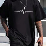 Camiseta de manga corta con estampado de figura y escote caido para hombres de talla grande