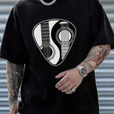 Camiseta de manga corta con hombros caidos y estampado de guitarra, talla grande para hombre