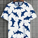 Camiseta de manga corta con estampado de tiburon y ajuste informal para hombre