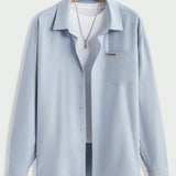 Manfinity rebelgame camisa de manga larga tejida azul de estilo callejero holgada para hombres de talla grande