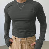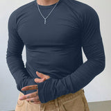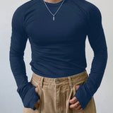 Dazy camiseta de manga larga con cuello redondo y mangas raglan ajustada para hombre, otono