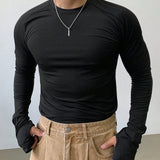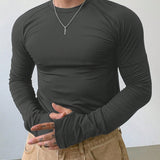 Dazy camiseta de manga larga con ajuste delgado y unicolor, informal, para otono