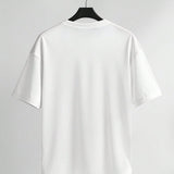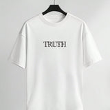 Rivetrise camiseta de manga corta con estampado de letras de punto blanco de hombro caido para hombre
