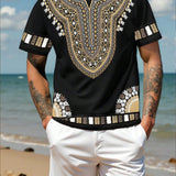 Rsrt camiseta de manga corta con estampado digital de flores geometricas y combinaciones de estilo folk, de moda casual y madura, adecuada para verano, vacaciones, citas, fiestas. puede ser un bonito regalo para el novio.