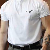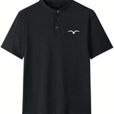 Camiseta de manga corta cuello henry para hombres, de unicolor y estilo minimalista adecuada para el verano