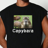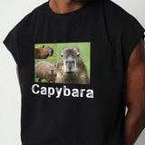 Chaleco con estampado de letra con diseno de capibara y pantalones casuales para hombre, adecuado para viajes, vacaciones, campamentos al aire libre y deportes