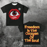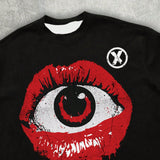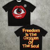 Zone917 camiseta de hombre con eslogan impreso con grafiti de labios y ojos aterradores de calle