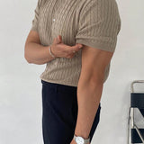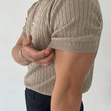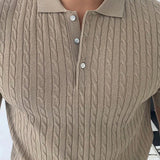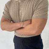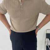 Sueter de punto de verano para hombres con cuello de solapa y textura de cuerda retorcida