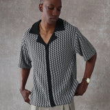 Sumwon camisa de manga corta con cuello revere, de punto texturizado, con ajuste regular