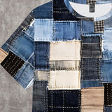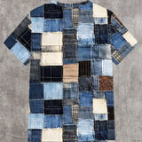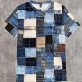 Homme camiseta de manga corta casual de corte ajustado para hombre con estampado grafico de parches con efecto de jean