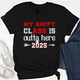 Camiseta de graduacion de hombres 2025 - "mi clase feliz se ha ido" regalo divertido para graduados, camiseta negra con grafico en rojo y blanco, ajuste regular casual, lavable a maquina, perfecta para graduados y celebraciones