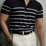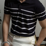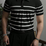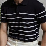 Camisa tipo polo de manga corta a rayas casual para commuter para hombres