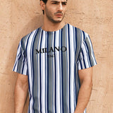 Modomio camiseta casual de manga corta con cuello redondo con estampado de letras y rayas para hombres