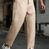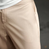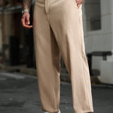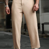 Manfinity casualcool ropa casual diaria para hombres: estilo de negocios para ir y venir, pantalones ajustados a juego de color caqui con textura de tela similar al lino y pliegues sutiles. perfecto para atuendos refrescantes en primavera y verano,