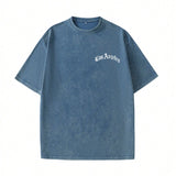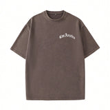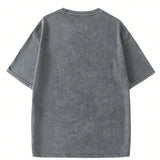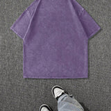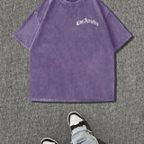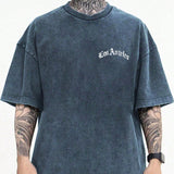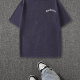 Camiseta casual de manga corta para hombre con estampado de letras divertido, cuello redondo y hombros caidos