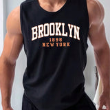 Chaleco de hombre con estampado de letras de alfabeto de estilo casual, que se puede combinar con pantalones casuales, adecuado para viajes/vacaciones/camping al aire libre/deportes