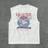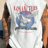 Chaleco casual de hombre con estampado de aguila y texto, para usar con pantalones casuales, adecuado para viajes/vacaciones/camping al aire libre/deportes