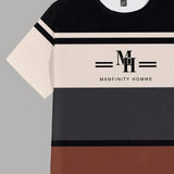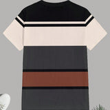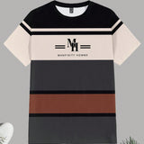 Homme camiseta informal de hombre de talla grande con bloques de color a rayas y estampado all-over