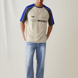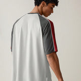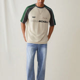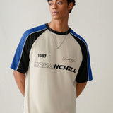 Manfinity urbanchill camiseta de manga corta casual y holgada de punto para hombre, con estampado de remiendo y patron, para uso diario