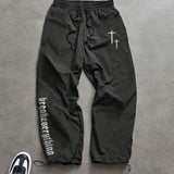 Manfinity sport corelite pantalones deportivos casuales de cintura con cordon y estampado de letras para hombres