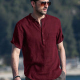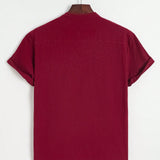 Camisa casual de oficina para hombre de manga corta y cuello semi abierto de unicolor
