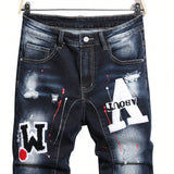 Manfinity emrg shorts jeans de talla grande para hombre con bolsillos y bordado de letras desgastados