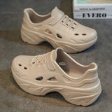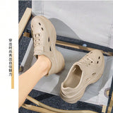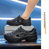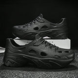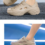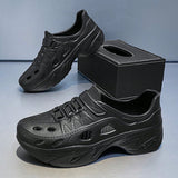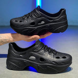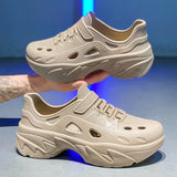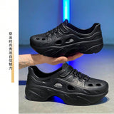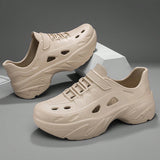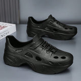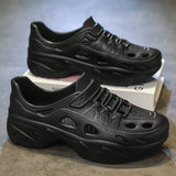 Sandalias sin cordones con diseno calado para hombres, suela gruesa antideslizante y resistente al desgaste, comodas y transpirables para conducir, playa, verano