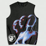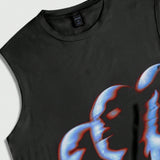 Romwe men camiseta de tirantes con estampado de retrato masculino, adecuada para el uso diario en primavera/verano