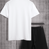 Conjunto de camiseta estampada + pantalones cortos para hombre, look casual minimalista ligero y comodo para uso diario