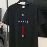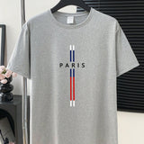 Camiseta informal de manga corta con cuello redondo y estampado de letras y rayas para hombre