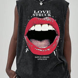 Shwiy camiseta de tirantes estampada con estilo de labios lavado vintage para hombres, estilo de moda callejera para uso diario
